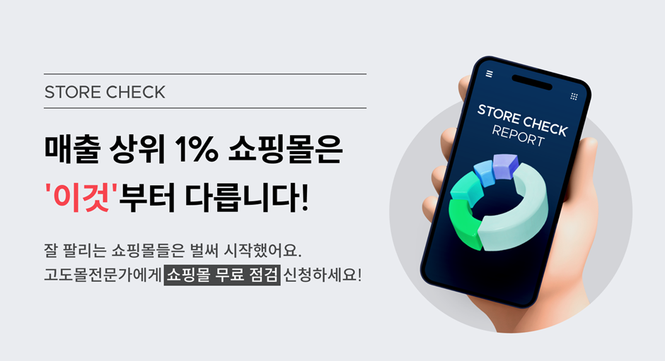 쇼핑몰 매출이 낮다면, 고도몰 전용 ‘스토어체크-자사몰 점검 리포트’로 진단해보세요.<br>
