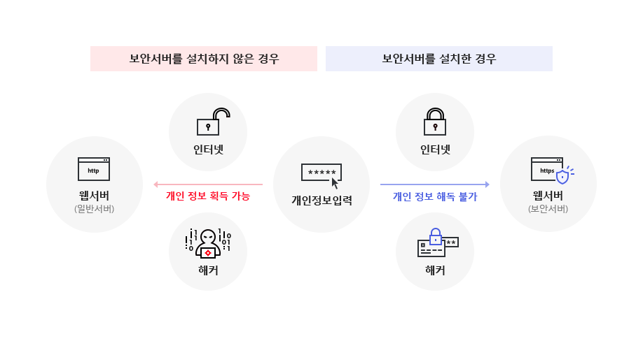 <figure><img src="https://files.gitbook.com/v0/b/gitbook-x-prod.appspot.com/o/spaces%2FNL4CvR0EBv2oPHye7ORd%2Fuploads%2FxiFF7icekN8j6Yz0FOyN%2Fimage.png?alt=media&#x26;token=d6a66bbc-5f73-4d1b-ba60-28f300d8182d" alt=""><figcaption><p>암호화된 https 통신은 개인정보 등 주요 데이터 유출을 막을 수 있습니다.</p></figcaption></figure>