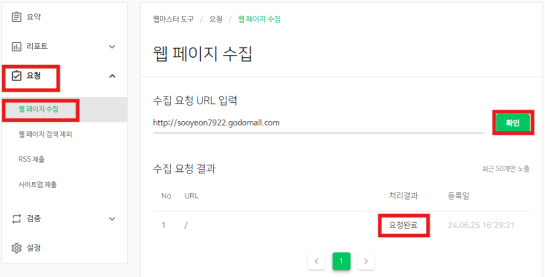 * 웹마스터도구 > 등록된 사이트 선택&#x20;